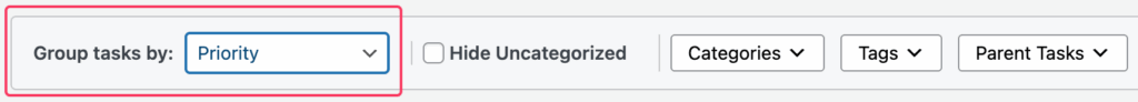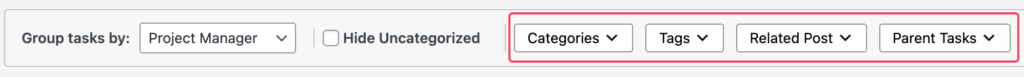 Related Post: If you’ve linked tasks to WordPress posts, use the Related Post dropdown to show only tasks associated with a specific post.